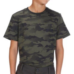 T-shirt Manches Courtes Chasse Coton Junior – 100 Camouflage Halftone Vert